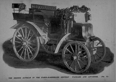 - Negen Panhard & Levassor’s, waaronder de winnaar van Parijs-Marseille, deze auto werd na de Run verkocht aan C.S. Rolls (inderdaad van het latere Rolls Royce)