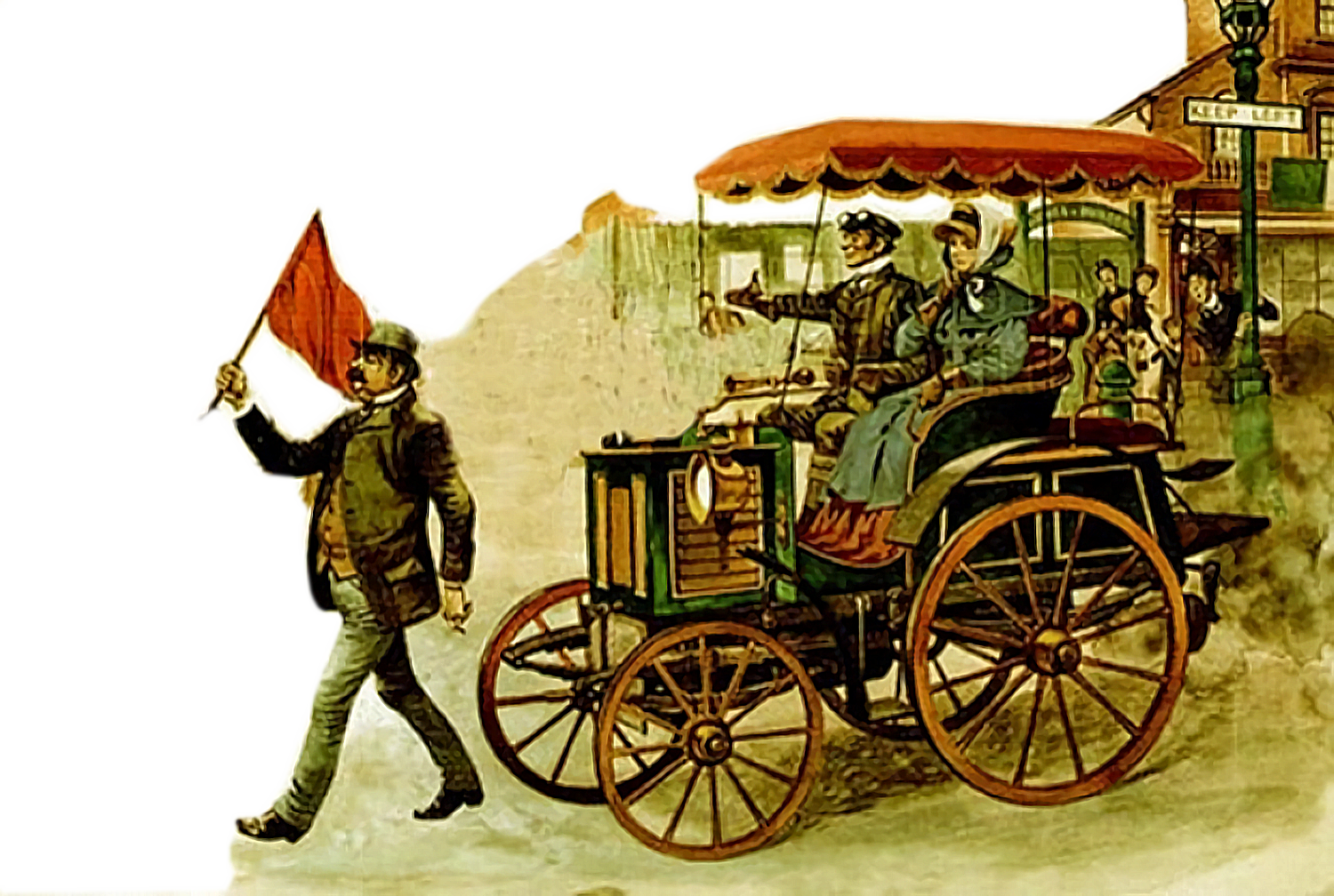 De “Run” was een rit van zo’n 60 mijl van London naar Brighton, bij de start werd de ‘rode vlag’ symbolisch verscheurd door Lord Winchilsea, die zelf met een Panhard & Levassor mee zou rijden.